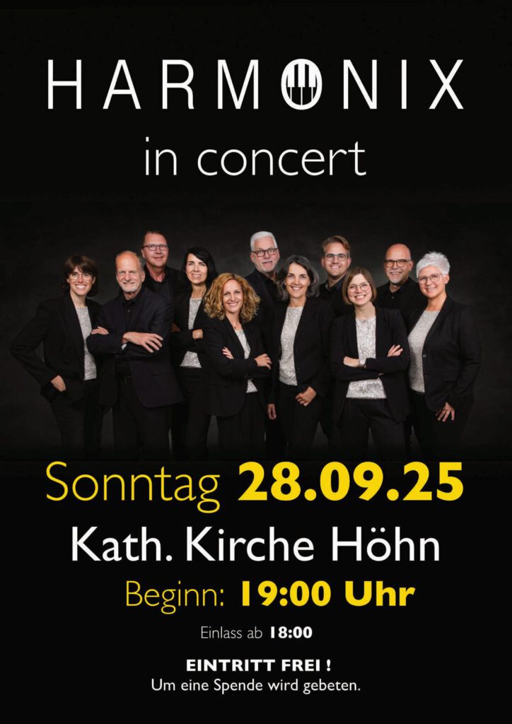 Unsere zehn Paar Stimmbänder und 88 Tasten möchten in diesem Jahr wieder die Höhner Kirche in Schwingung versetzen. Dabei dürfen Sie sich auf Altbekanntes von uns, aber auch auf neu einstudierte Lieder und eigene Arrangements aus der Feder von unserem Pianisten Volker Siefert freuen.